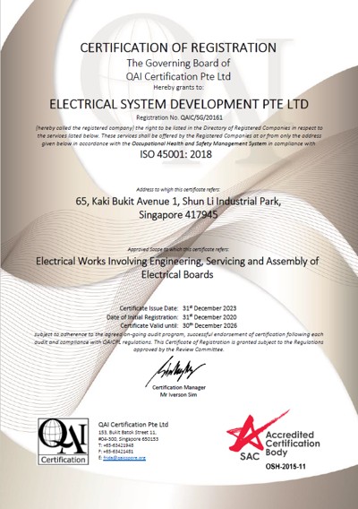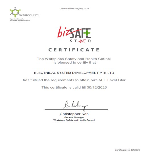 Our Certifications We have attained the bizSAFE STAR, ISO 45001:2018 and ISO 9001:2015 certifications by early 2013. bizSAFE STAR ISO 9001: 2015 ISO 45001: 2018